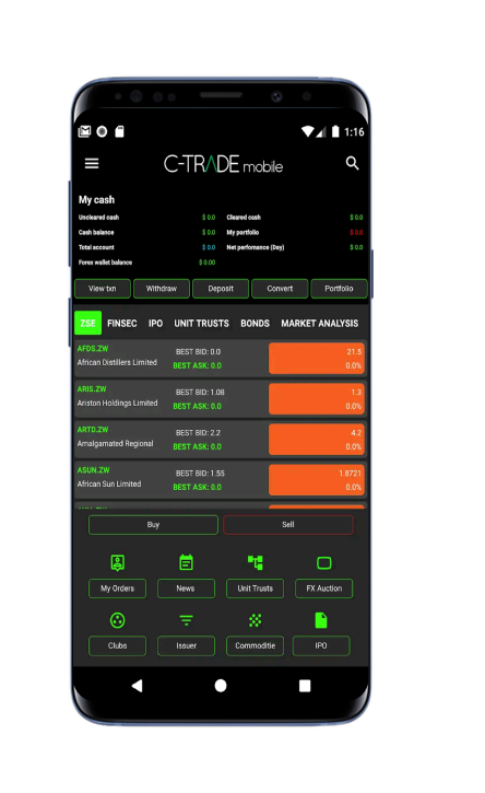 The platform can be accessed using ctrade.co.zw alternatively it can be accessed on C-TRADE mobile app which can be downloaded from the Google play store or Apple app store.